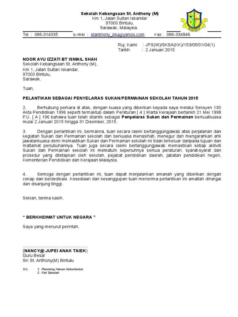Eksa pkd perak tengah surat lantikan . Isi kandungan juga perlu menyatakan tarikh khusus ianya bermula dan tamat dikuatkuasakan. Kerjasama dari pihak tuan amatlah dihargai dalam memastikan kelancaran pengurusan tersebut. Persatuan ibu bapa dan guru sekolah kebangsaan batu luking 96700 kanowit sarawak no. Surat lantikan jawatankuasa keselamatan dan kesihatan.